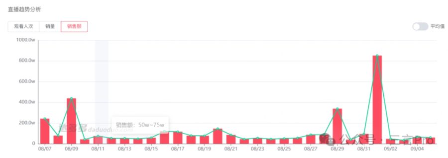 第三方数据平台显示,9月1日,三只羊的直播间日销售额为750万-1000万。此后的几天时间里,该直播间日销售额均未超过百万。