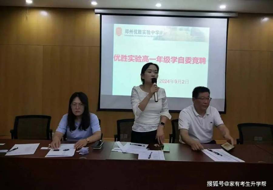 为加强优胜实验中学学生干部队伍建设,提升学生自我管理能力和水平,更好地服务广大师生,9月2日下午,郑州优胜实验中学高一年级2024年学自委竞选大会在会议室举行。