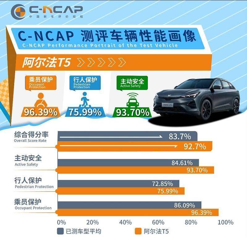 汽车安全的重要性想必不用多说,相信任何一个人都非常关注,但车辆是否安全除了参考第三方机构的专业评测就只能靠企业良心了。近期关于安全汽车圈又发生一起大事儿,近日中汽中心汽车测评管理中心公布了北汽极狐阿尔法T5的C-NCAP碰撞成绩,此次官方指导价仅为19.98万的阿尔法T5 撞出了综合得分率为92.7%,翻看CNCAP历史全部碰撞测试结果,这一成绩首先让阿尔法T5斩获中型纯电SUV第一的宝座,更炸裂的是阿尔法T5更是50万内唯一获得超五星评价的车型。