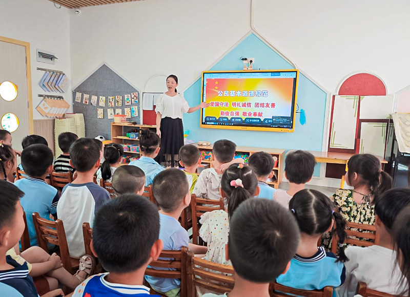 为提高幼儿园师幼及家长对“公民道德宣传日”的重视,该园充分利用电子显示屏、宣传栏等媒介宣传社会主义核心价值观、做文明公民,向全体师幼和家长进行公民道德知识的宣传,营造良好氛围,传递正能量。各班教师围绕“公民道德宣传日”主题,通过视频、故事、动画、情景剧等多种形式开展践行文明活动,将“公民道德”渗透于幼儿一日生活中,帮助幼儿增强对“公民道德建设”的理解,让孩子们懂得了从小要讲文明礼仪、守公德。