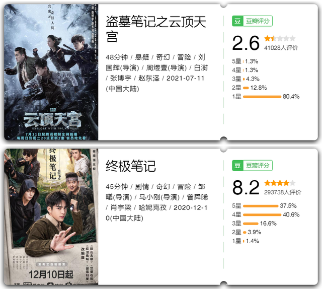 为什么会出现“盗笔剧”不好的错觉?大概是因为在影视题材的分类中,《盗墓笔记》与《鬼吹灯》同属冒险题材,但实际上两个IP从内容搭建到改编思路,却完全不同。