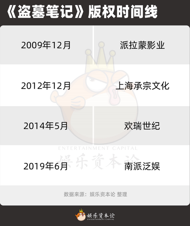 另外,就是在《盗墓笔记》版权辗转的过程中,众多作家亲眼见证了影视收益远大于版权收益,想必南派三叔也萌生了自己的IP自己赚钱的想法。