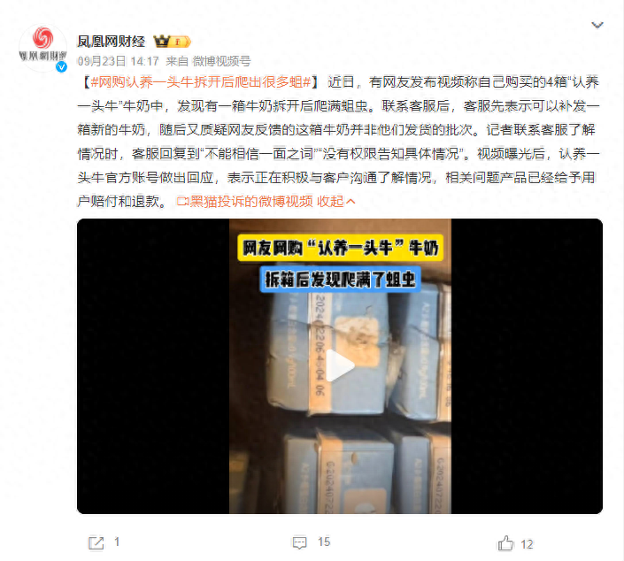 就牛奶包装破损出现蛆虫的事情,有网友认为认养一头牛的反应比较迅速,但是对于一家新锐乳企来说,认养一头牛在包装、售后等方面还有不小的进步空间。你购买过认养一头牛的产品吗?欢迎在评论区留言讨论。