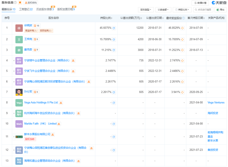 天眼查显示,认养一头牛成立于2014年,至今仅10年,相较于国内乳业巨头,认养一头牛算是年轻一辈。其创始人徐晓波既是企业法定代表人,也是实际控制人,持股比例为45.6075%。成立至今,认养一头牛先后获得了来自德弘资本、美团龙珠、古茗等多家机构的投资,截至最后一轮融资,认养一头牛的估值超过100亿元。不过,认养一头牛受到资本青睐的同时,也引发了不小的争议。