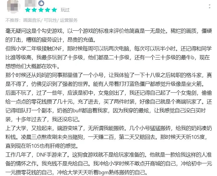 大热腾讯手游《地下城与勇士:起源》taptap评分仅有3.6,大量五星差评充斥着好评区,有的点赞量高的评论甚至会被精选为优质评论,渐渐成为乐子人和玩家的团建帖。