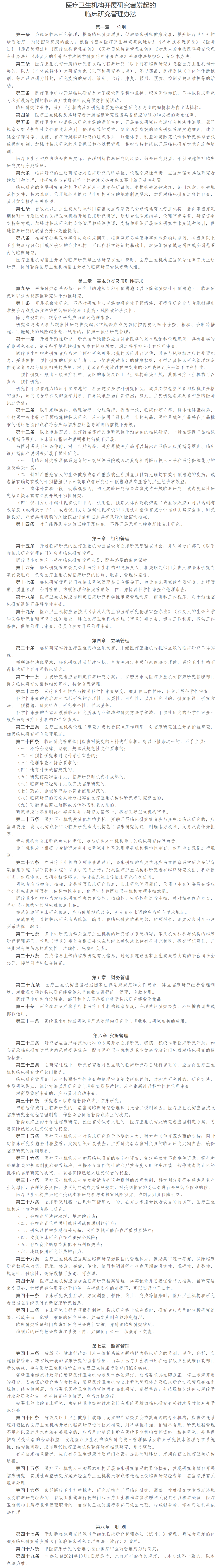 三部委联合发布《医疗卫生机构开展研究者发起的临床研究管理办法》