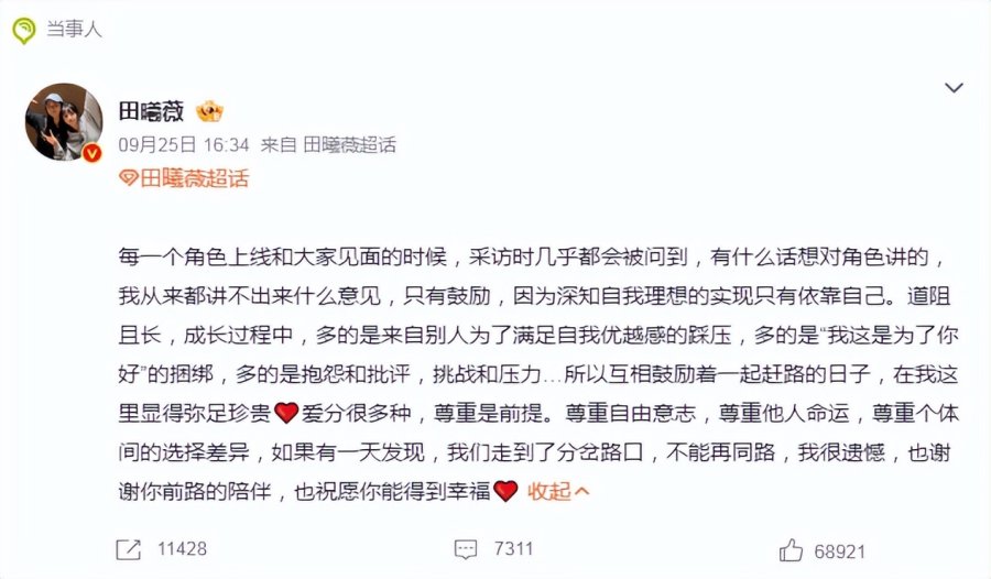 田曦薇回应粉丝对其接戏的质疑登上热搜