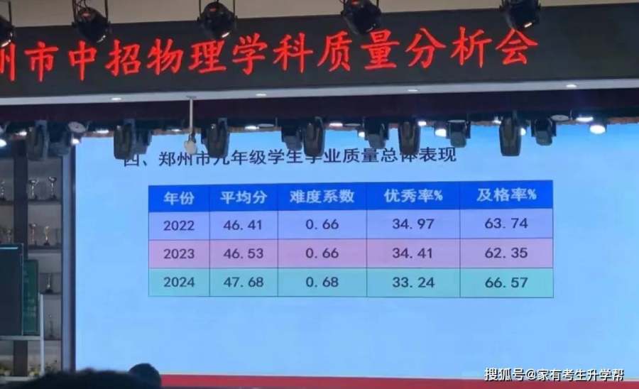 会上对今年郑州中招物理考试情况进行整体分析,并对整体平均分、难度、实考人数等作出统计。