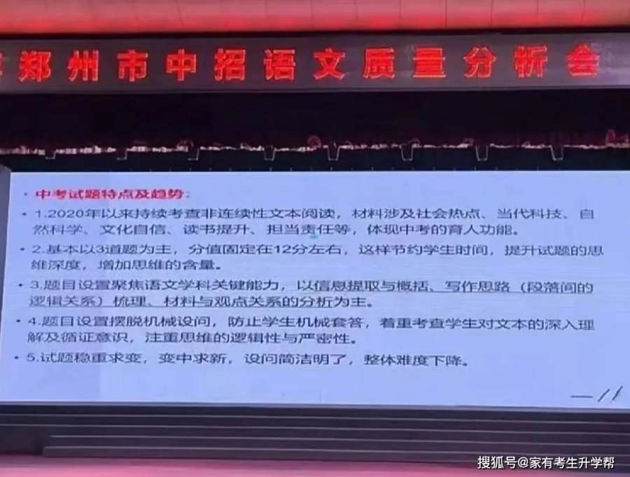 近日,2024年郑州市中招语文学科质量分析会举行。会上对近十年河南中考试题进行比较,并产出其试题特点及趋势。