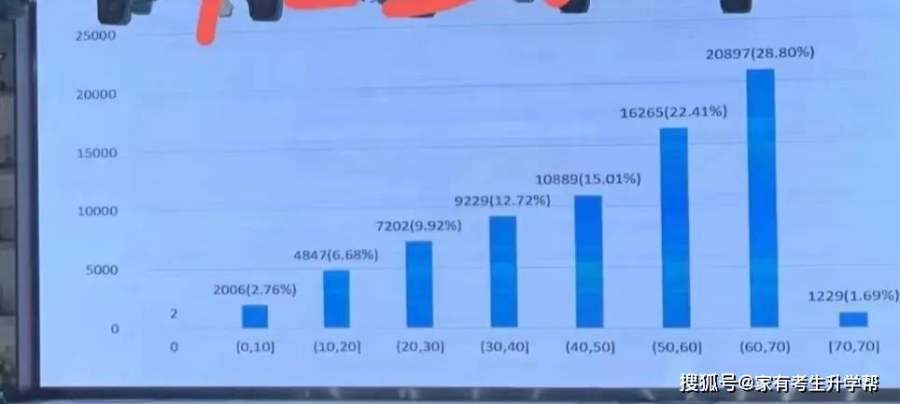 60-70分20897人,占比28.8%;