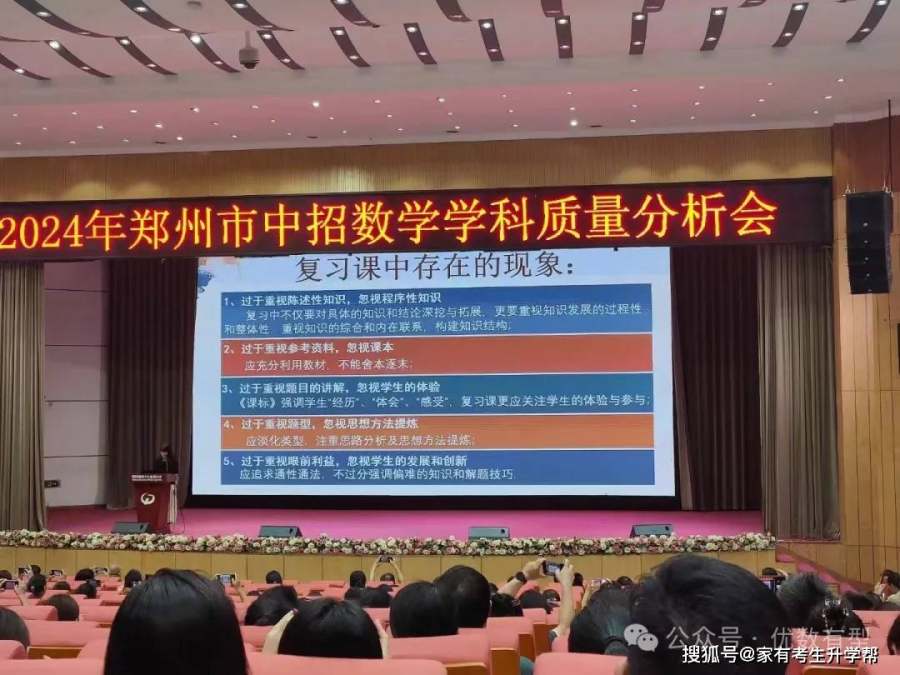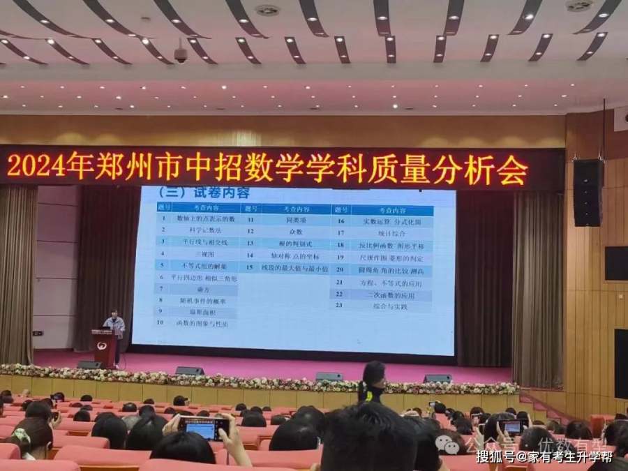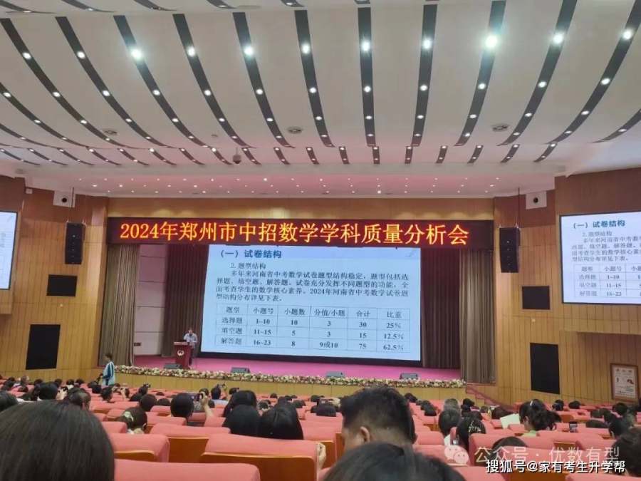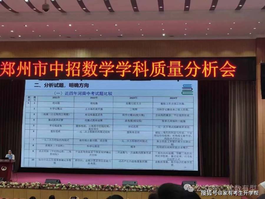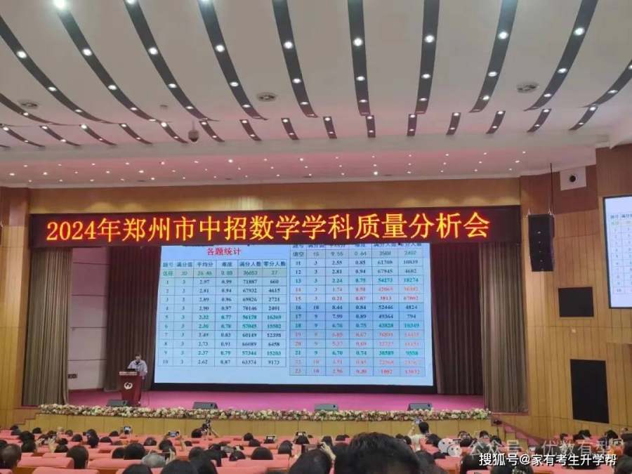 近日,2024年郑州市中招数学学科质量分析会举行。会上对近四年郑州中考试题进行比较,并对各题满分值、平均分、难度、满分人数、零分人数做出统计。