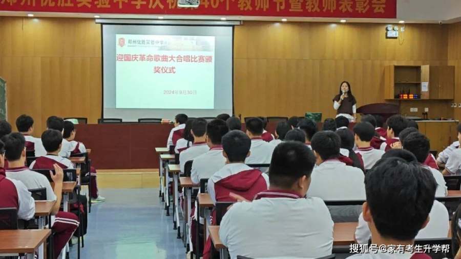 金秋华诞,山河同喜。值中华人民共和国成立75周年之际,为进一步弘扬爱国主义精神,继承红色传统、激发前进动力,9月30日上午,由郑州优胜实验中学高一年级举办的“迎国庆 革命歌曲大合唱比赛”活动在教学楼举行。