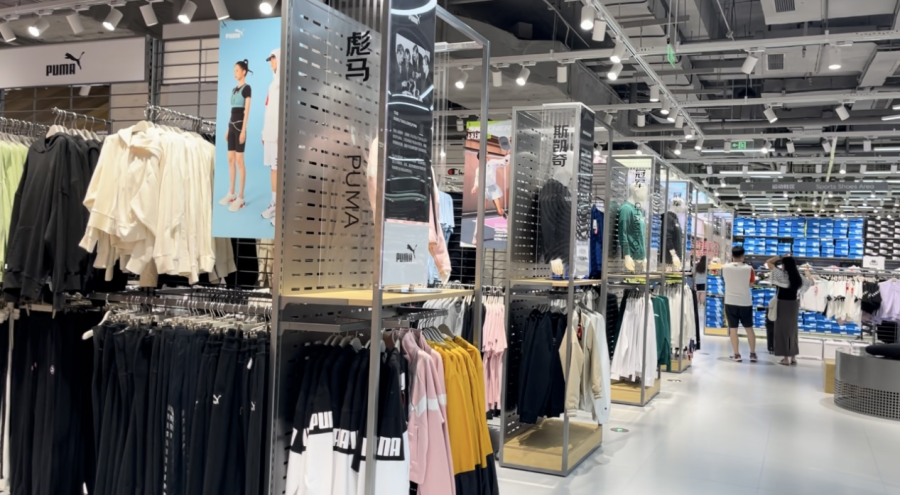 从品类来看,一楼以户外运动品牌为主,入口位陈列着阿迪达斯服饰、右侧则是彪马、斯凯奇、冠军等运动品牌。