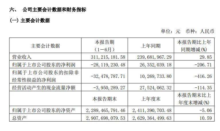 2024年上半年,炬光科技实现营业收入3.11亿元,同比增长29.85%;净利润-2811.92万元,同比下降206.71%,公司出现亏损。