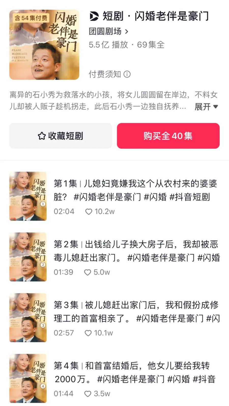 再到上个月,一部名为《闪婚老伴是豪门》的短剧在各大平台爆火。