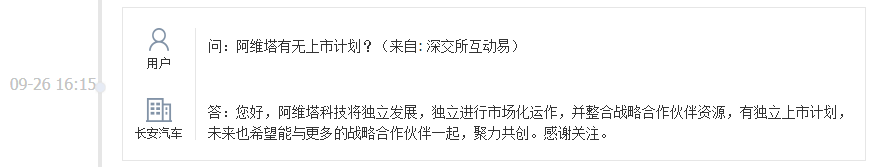 长远维度来看,性价比更高的上市融资方式也毕竟不能错过。此前,在回答投资者问题时,长安汽车表示阿维塔科技将独立发展,独立进行市场化运作。