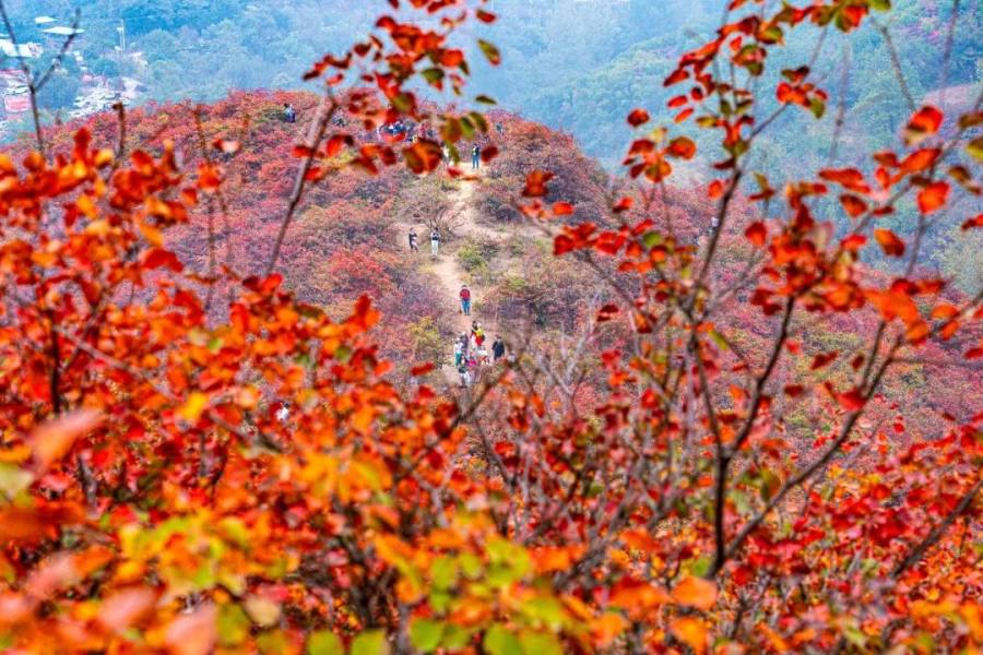 人如画中行,红叶如诗如画般装点在山间。一片片,似燃烧的火焰,在枝头跳跃,最浓处,仿佛要将整个秋天点燃。