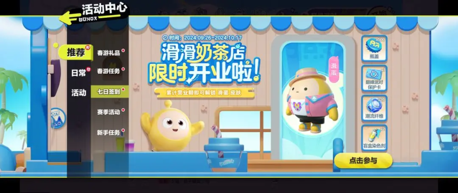 将剧情融入到玩法之中,让蛋仔角色在游戏中获得了更多存在感。除了五小只,蛋仔IP的许多人气角色也都以NPC的身份出现:淘气丸子想开一家奶茶店,苹果派雪雪想拥有自己的烘焙店,熊猫岁岁渴望开温泉浴场等等,而玩家要做的,就是通关获得瓶盖解锁店铺,帮助他们实现梦想。