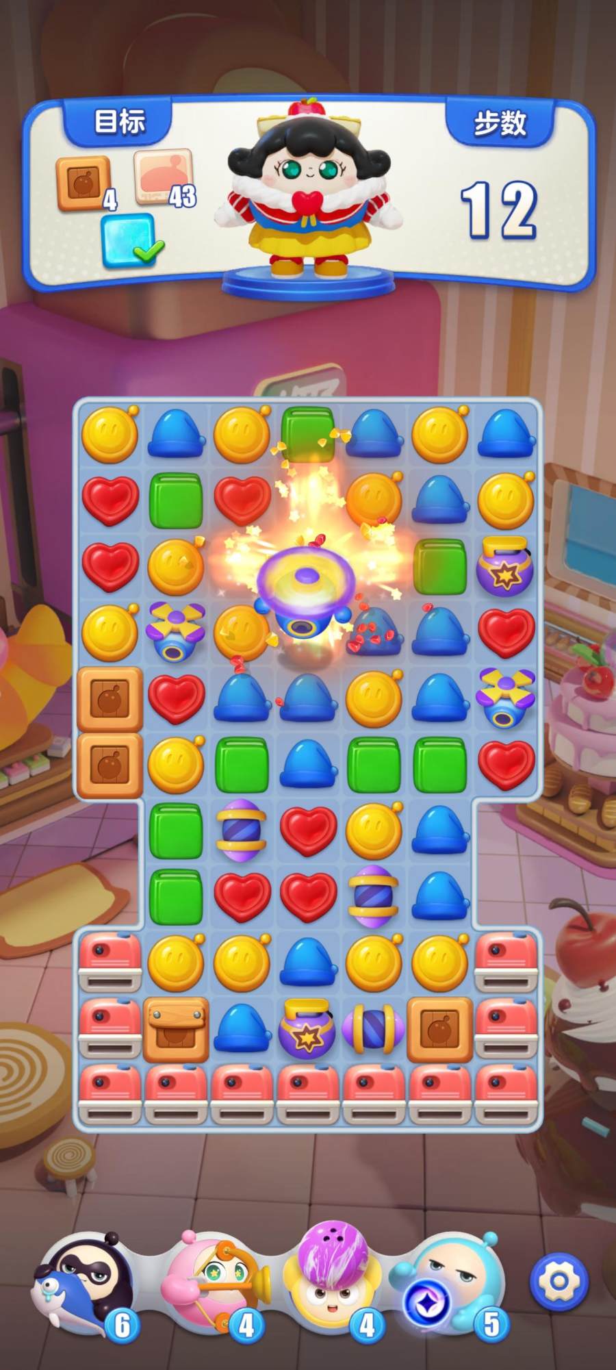 当你用特殊排列方式消除方块时,会生成电视机、炸弹、飞弹等特殊道具。道具之间还能形成组合技,比如将电视机和炸弹进行组合,电视机就会将数量最多的同色方块转化为炸弹;将炸弹与飞弹进行组合,炸弹就能飞向未完成的目标进行清除。