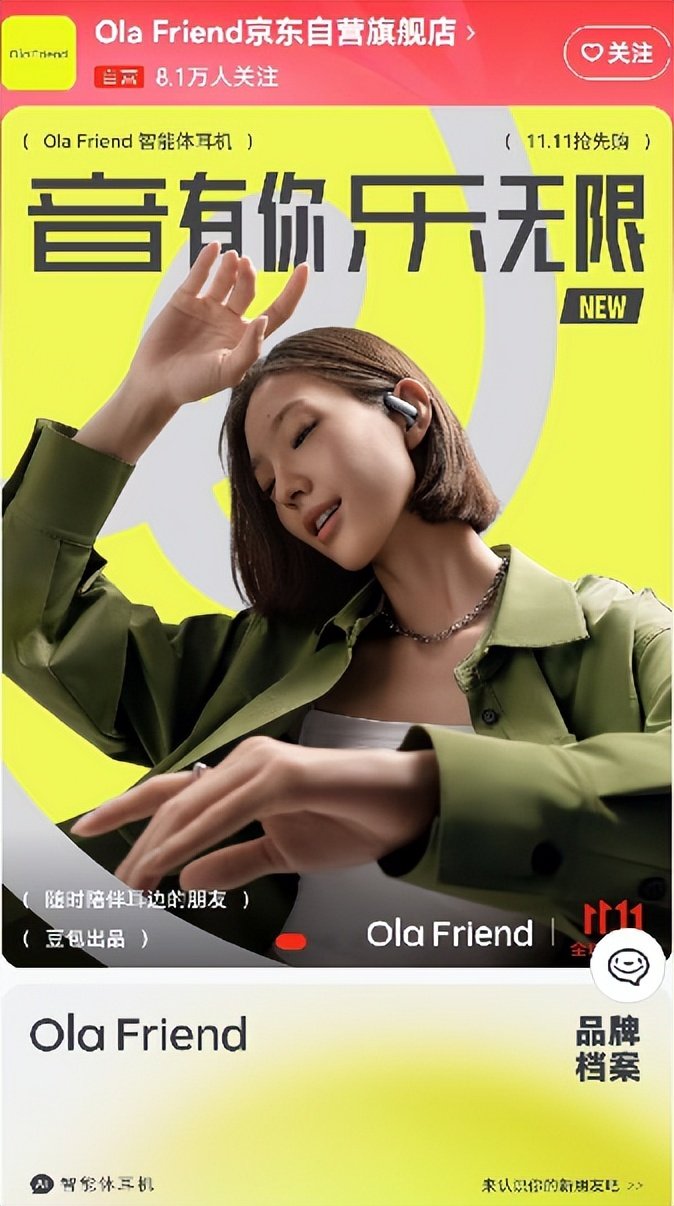 借助豆包AI带来的价值增量,截至10月18日,OlaFriend天猫旗舰店粉丝数已超1.8万,京东自营旗舰店粉丝则已超8万。其中,天猫平台的豆包AI智能体耳机销售量已成功破千。