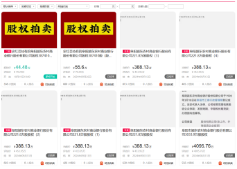 此外,贝多财经整理阿里资产交易平台信息发现,进入2024年以来,阜阳颍东农商行一拍流拍的股权合计7479.201万股,二拍流拍的股权合计1109万股,变卖流拍的股权合计1109万股,10月19日,又有387410股将进行二拍,截至撰稿日,尚且无人报名。