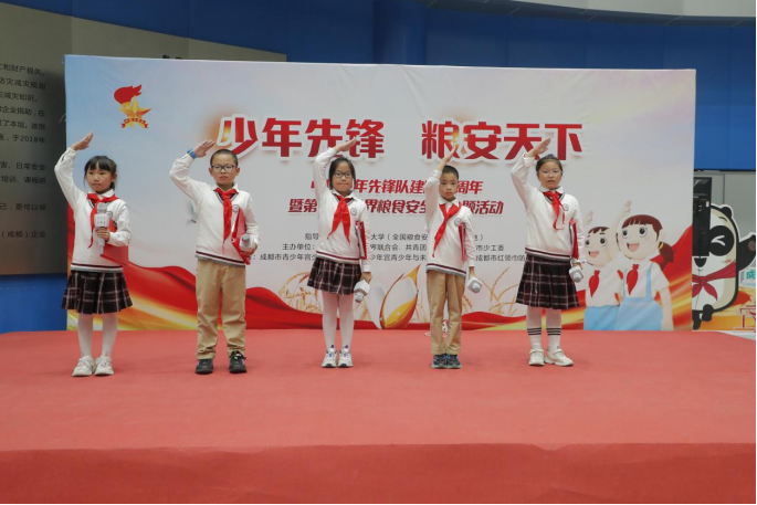 由西南财经大学全国粮食安全宣传教育基地指导,四川省成都市社会科学界联合会、共青团成都市委、成都市少工委主办,成都市青少年宫少工委、成都市青少年宫青少年与未来防灾体验馆、成都市红领巾防灾安全学院承办的“少年先锋 粮安天下”主题活动,于10月16日在四川省成都市青少年宫青少年与未来防灾体验馆隆重举行,本次活动旨在激发少先队员对粮食安全问题的关注,培养他们粮食安全意识;大力弘扬少先队员艰苦奋斗、勤俭节约的中华民族传统美德,让节约粮食在青少年乃至全社会蔚然成风;传承少先队实践精神、科研精神,传承科技创新助力保障粮食供给;发挥少先队员示范作用、主人翁精神,积极推广粮食安全知识,为构建和谐社会作出贡献,展现新时代少先队员的责任感和使命感。全市120余名优秀少先队员代表参加了此次活动。
