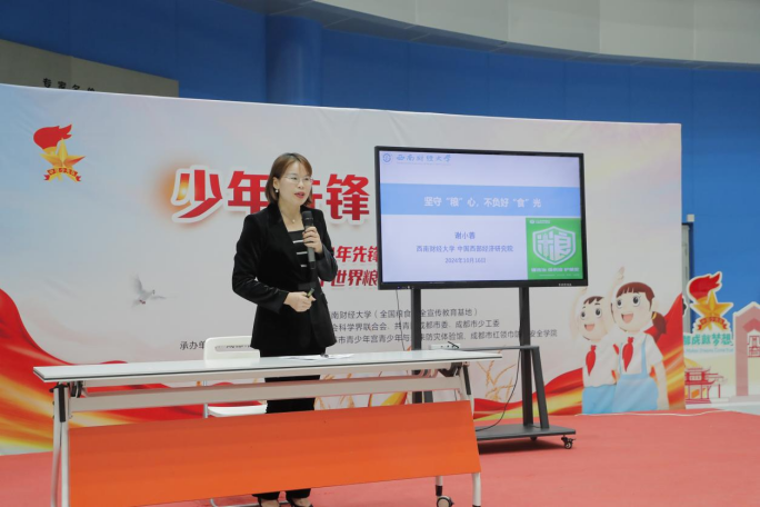 在启动仪式现场,随着成都市青少年宫领导的精彩致辞,“少年先锋 粮安天下”主题活动的序幕徐徐拉开;成都市少工委领导详细介绍了红领巾防灾安全学院;在西南财经大学中国西部经济研究院谢小蓉教授主讲的粮食安全主题微队课《坚守“粮”心,不负好“食”光》上,每个少先队员的脸上都洋溢着热情和专注,他们以认真的态度彰显着少先队员的精神风貌,也深深理解了粮食安全的重要性;微队课结束后,少先队员代表给西南财经大学的专家老师们佩戴上了鲜艳的红领巾,向这些粮食领域专家学者们致以崇高的敬意;在随后的环节中,优秀少先队员代表带领全体少先队员进行了爱粮节粮的倡议,加深了自己对爱粮节粮的坚定与信心,当铿锵有力的声音响起时,整个会场都被孩子们的朝气蓬勃所感染,他们以自己的方式诠释着对祖国的热爱和对未来的憧憬。