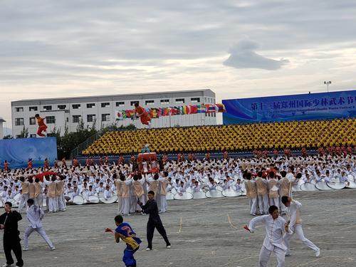 少林武术的飞人表演震撼开始!随着主持人一声令下,“少林飞人”炫酷登场,只见一个个表演者身子矫健,如同离弦之箭,蓄势待发,他们瞬间发力,腾空而起,似飞燕穿梭于云端。