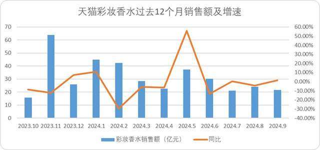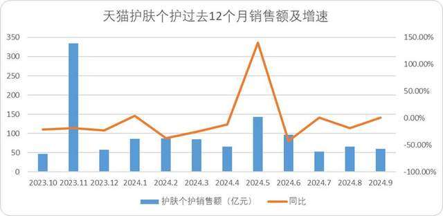 图:天猫护肤个护及彩妆香水一年间销售表现,来源:青眼数据