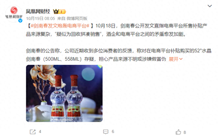 剑南春发文“炮轰”,白酒企业和电商平台“矛盾”难解?