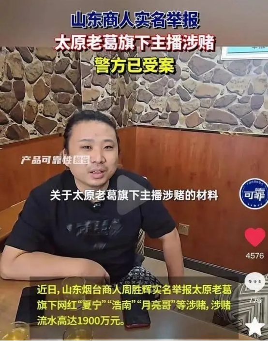 据蓝鲸新闻报道,近日,该媒体接到举报线索,称太原老葛旗下主播“夏宁、浩南、月亮哥、刘二狗”等涉嫌组织并参与赌博活动,上述主播都是大网红,在快手拥有超过千万的粉丝。