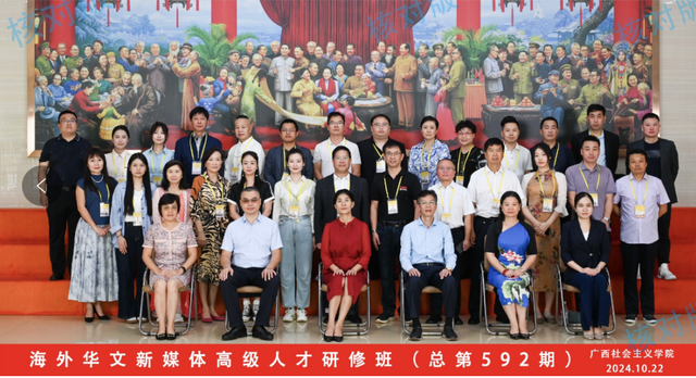 2024年10月22日,由广西壮族自治区侨务办公室、广西中华文化学院共同主办的2024年海外华文新媒体高级人才研修班在广西南宁市举办。来自美国、德国、韩国、意大利和中国香港等多个国家地区,具有影响力和号召力的华文媒体,以及专业作家,网络写手、草根网红等近30人,参加了该次海外华文新媒体高级人才研修班学习。