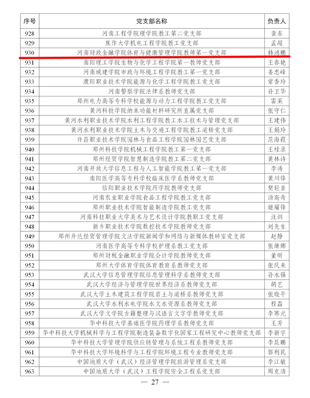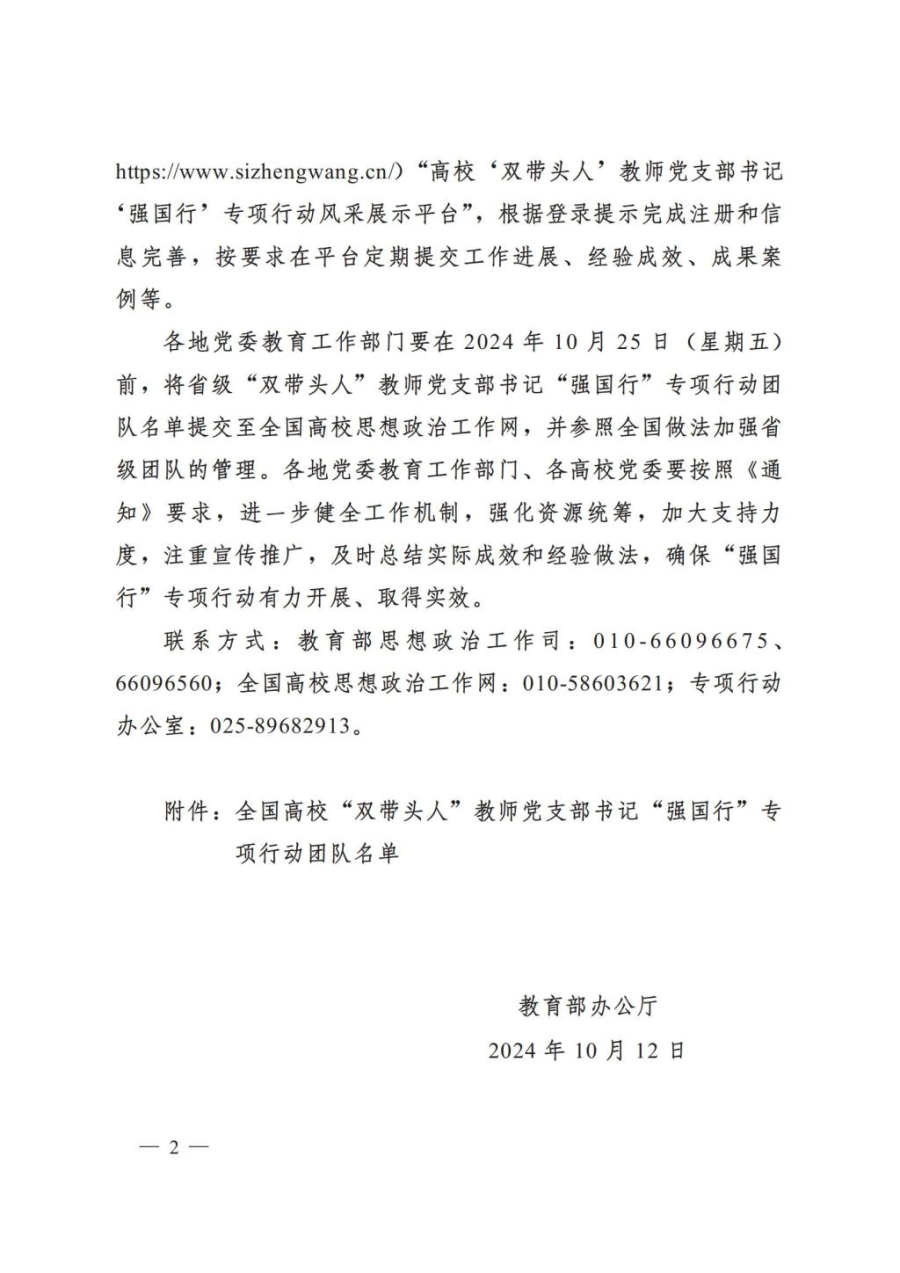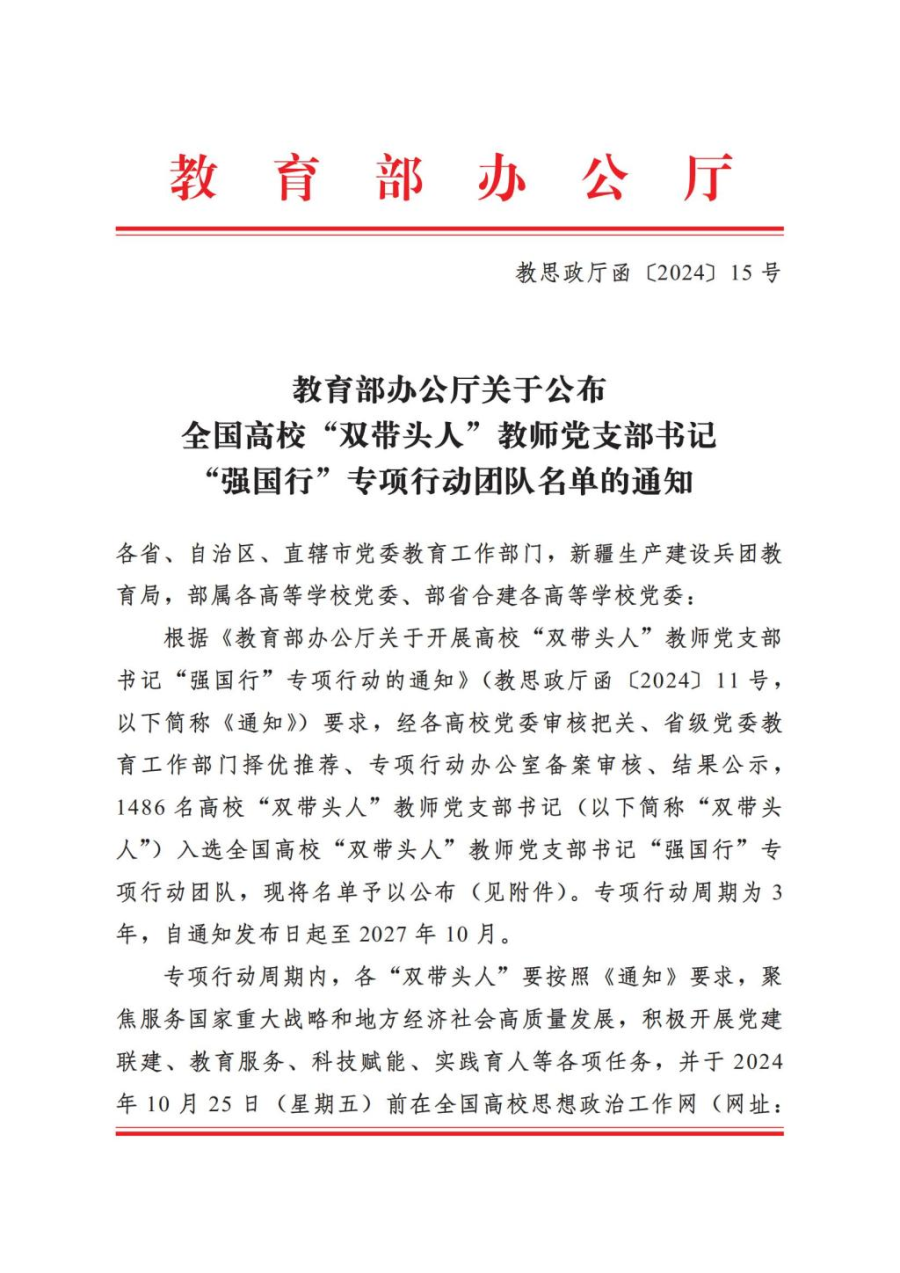 近日,教育部办公厅印发《教育部办公厅关于公布全国高校 “双带头人”教师党支部书记 “强国行”专项行动团队名单的通知》(教思政厅函 〔2024〕15 号),河南财政金融学院体育与健康管理学院教师第一党支部入选全国专项行动团队。
