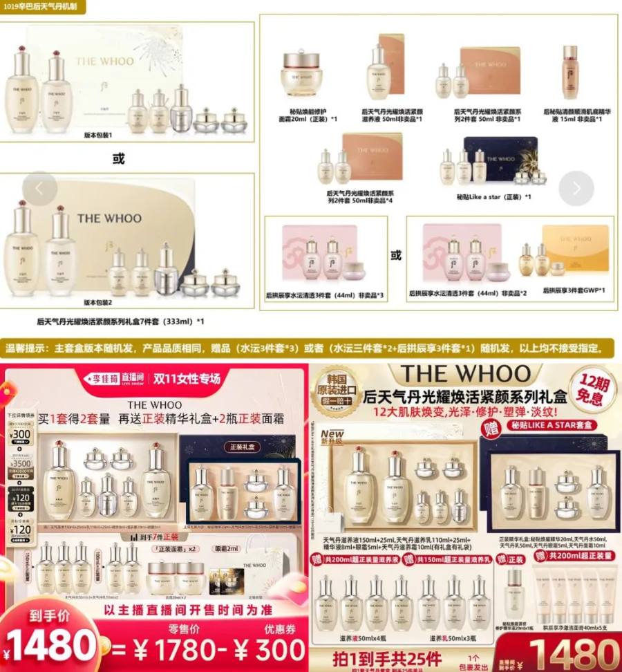 对比淘系李佳琦、抖音广东夫妇直播间、快手辛巴直播间优惠机制,Whoo后的天气丹礼盒券后价格均为1360元,仅赠品有细微差距,但很难说得上辛巴直播间具有压倒性的破价优势。