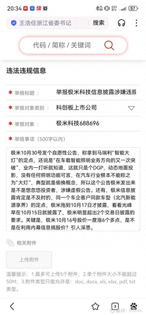 不过尴尬的是,帅不过三秒,紧接着打脸的就来了。有股民在股吧举报极米科技的这个信披涉嫌违规操作: