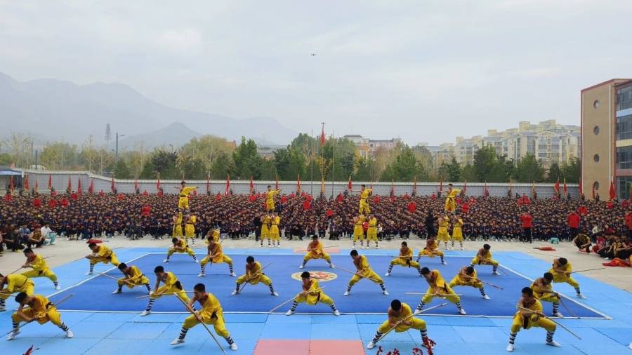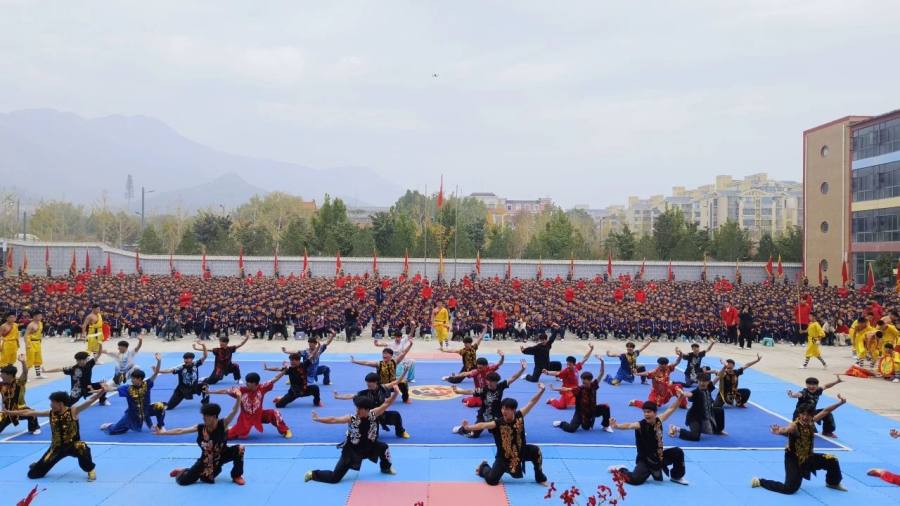 “中岳少林文武学校第三十九届运动会开幕!”校长永帝宣布比赛开始,全场爆发出阵阵欢呼。