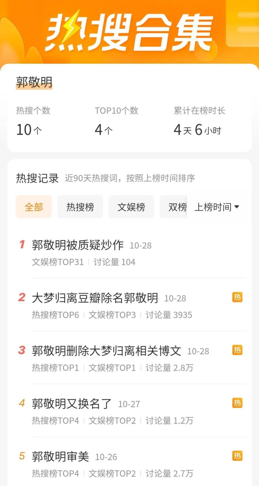 《大梦归离》开播后郭敬明登上5个高位热搜