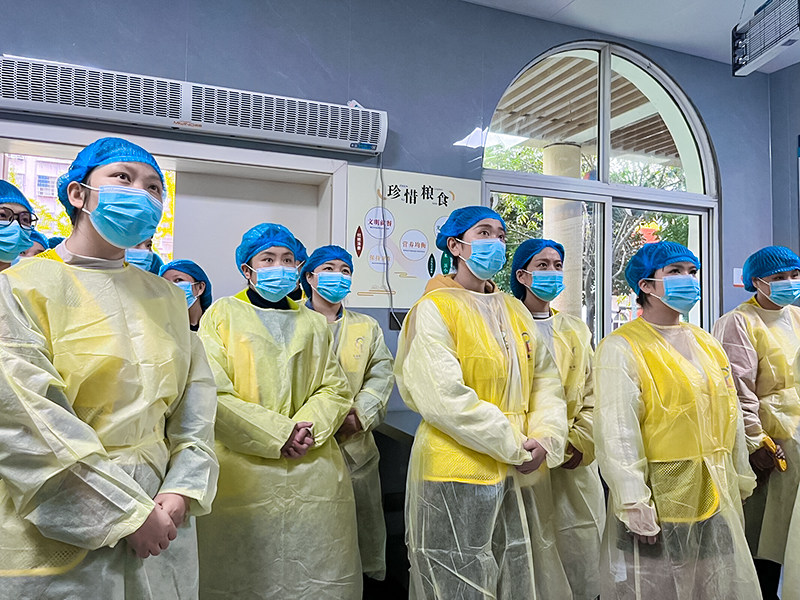 紧接着,该园引导家长们严格按照幼儿园食堂管理规定整齐着装后,逐一有序走进食堂各功能间,实地查看了幼儿园食堂的环境卫生、食品留样、餐具消毒、食物储存等各方面情况,对幼儿园食堂操作流程进行了全面的查看和了解。