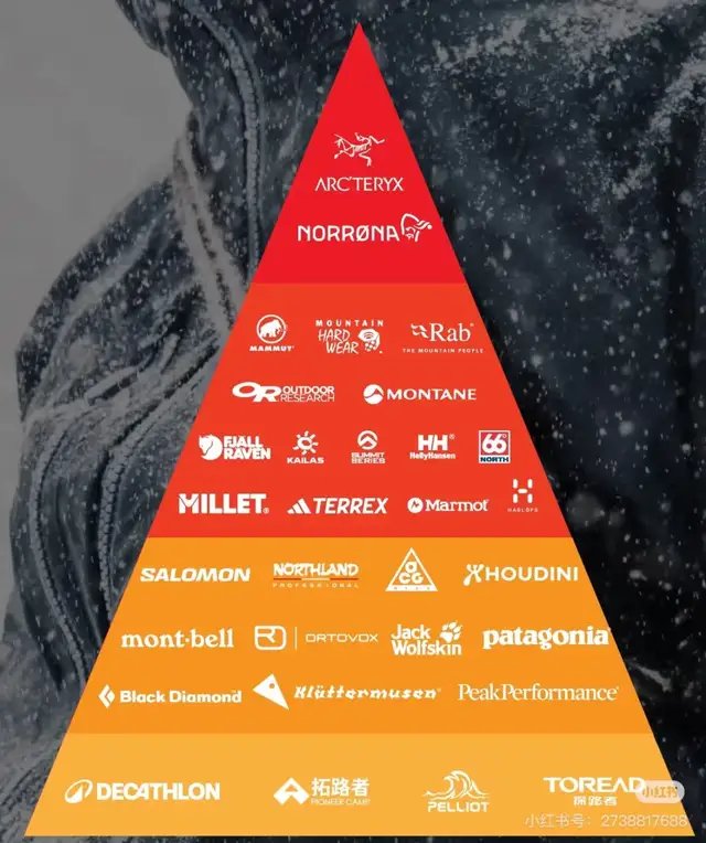 冲锋衣品牌金字塔|图源:小红书