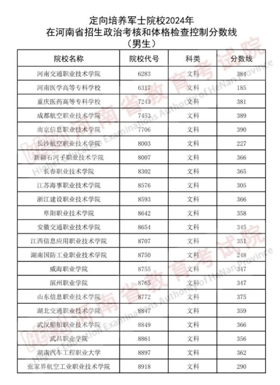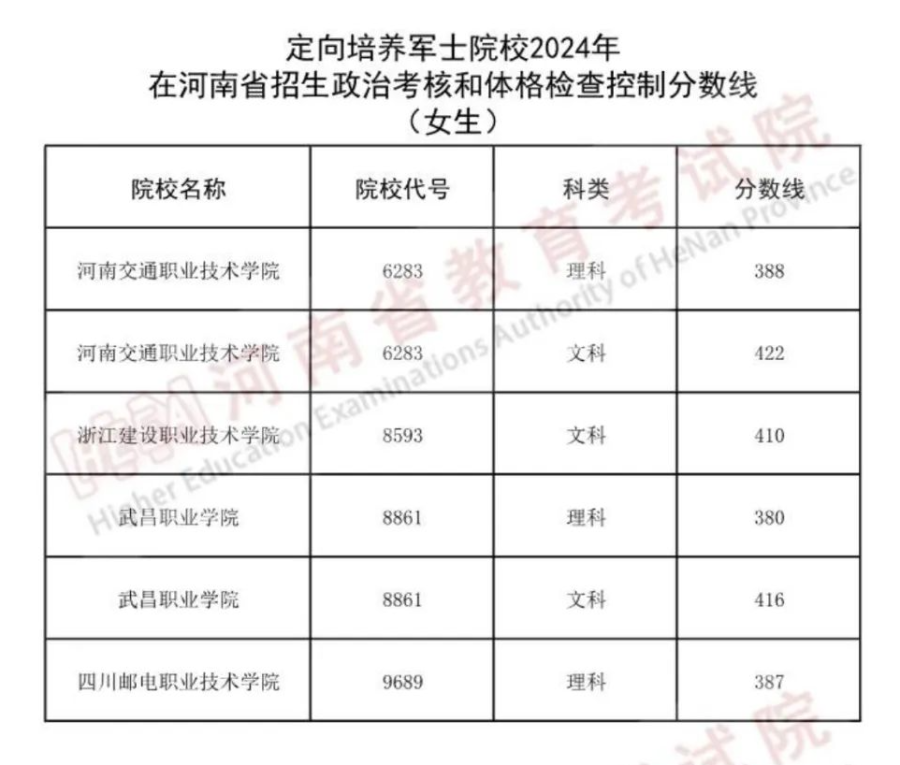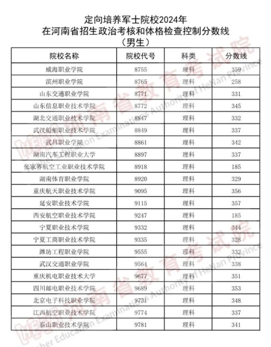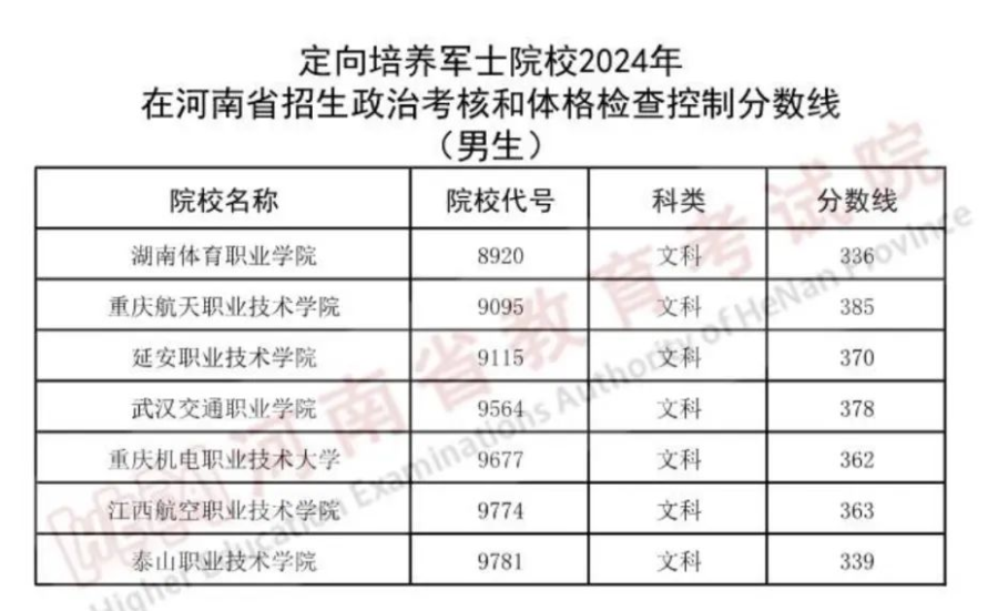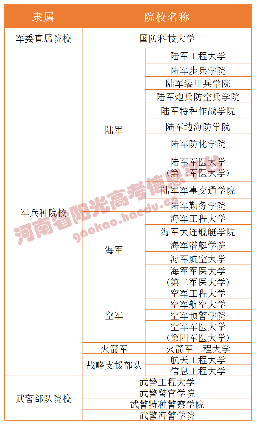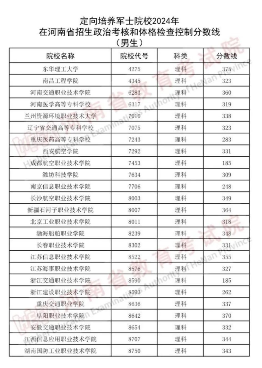 注意:2025年河南省定向培养军士招生院校及招收计划以考试院公布的政策为准!