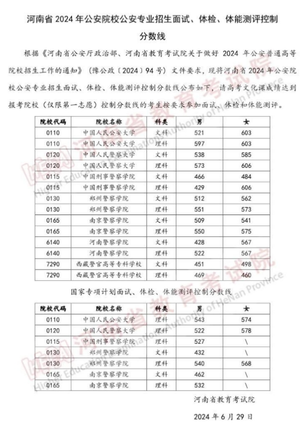 2024年在河南招生的公安类院校有中国人民公安大学、中国人民警察大学、中国刑事警察学院、郑州警察学院、南京警察学院、河南警察学院、西藏警官高等专科学校。