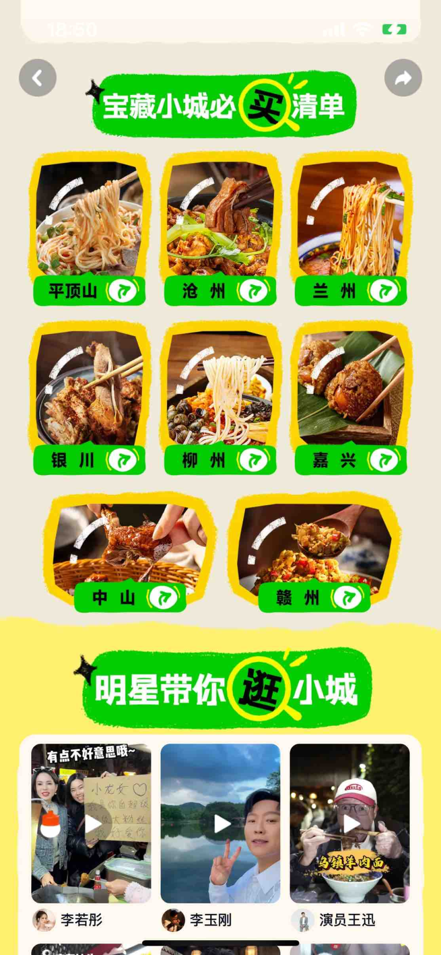 活动期间,多位明星将“在线逛吃”,向网友种草嘉兴、赣州、沧州、柳州、平顶山、中山等城市的美食。西北的兰州牛肉拉面,华南的柳州螺蛳粉,华东的嘉兴肉粽糯米滋酱鸭,以及中原一带的平顶山饸饹面,华北的沧州火锅鸡等,都将有明星带网友一一体验,并推荐当地的特色文旅资源。