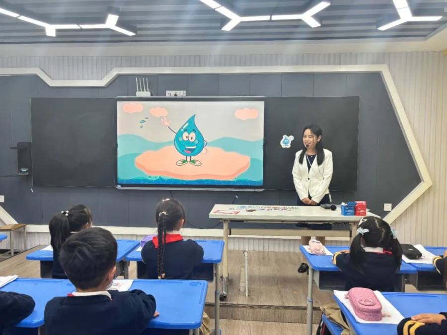 中原区淮河路小学任新丽老师执教二年级下册《小水滴的诉说》。任老师设计“水世界旅行”的情境教学,带领学生们打卡“云游”黄图高原、海岛、大江大河。学生在虚拟旅行中了解水资源的现状,并深刻感受到水的宝贵。通过播放新闻视频、小组合作等方式,学生们了解水资源现象并提出保护水资源的多种方法。整堂课学生们思维活跃,兴趣高涨,积极参与到保护小水滴的行动中来。