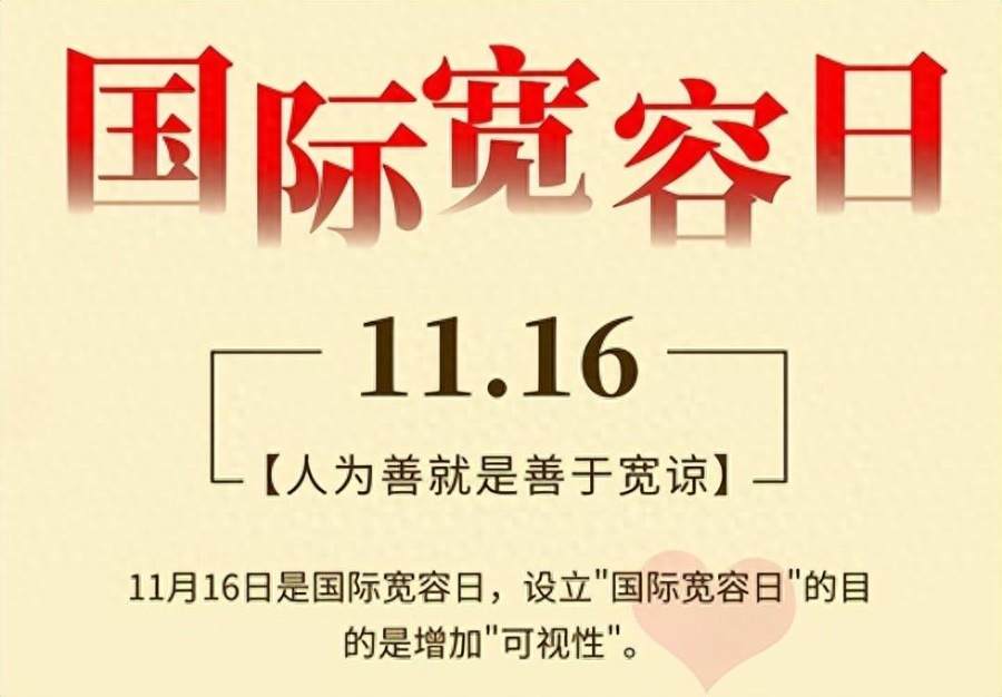 题记:今天11月16日,是“国际宽容日”,设此目的是至少每年一次让世界各国、国际机构、非政府组织和个人的目光聚焦于“宽容”主题,并为此贡献力量。宽容是一种积极而正确的态度,是基于了解且尊重他人自由和权利而获得。思之感之,作【七绝二首•国际宽容日述怀】,谨以此纪念之。如是: