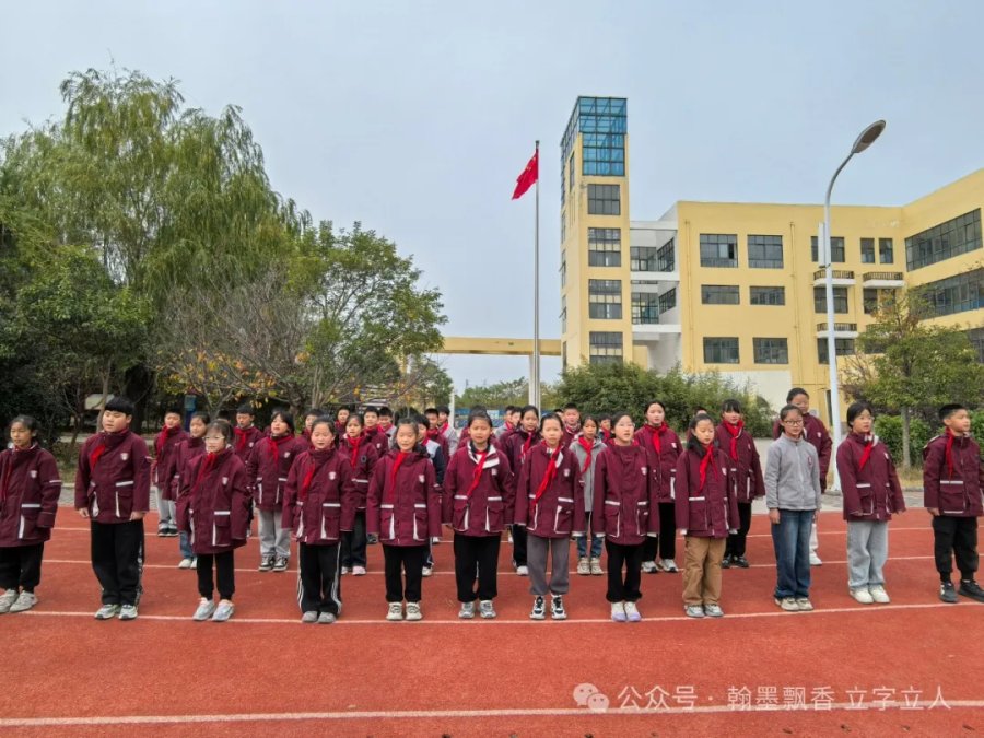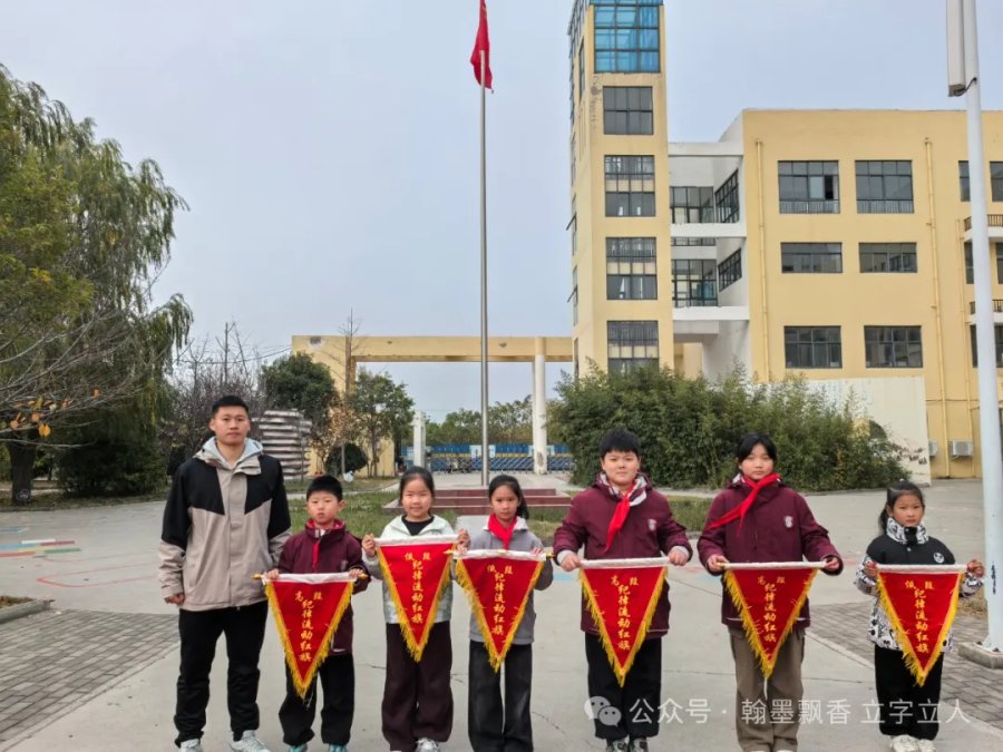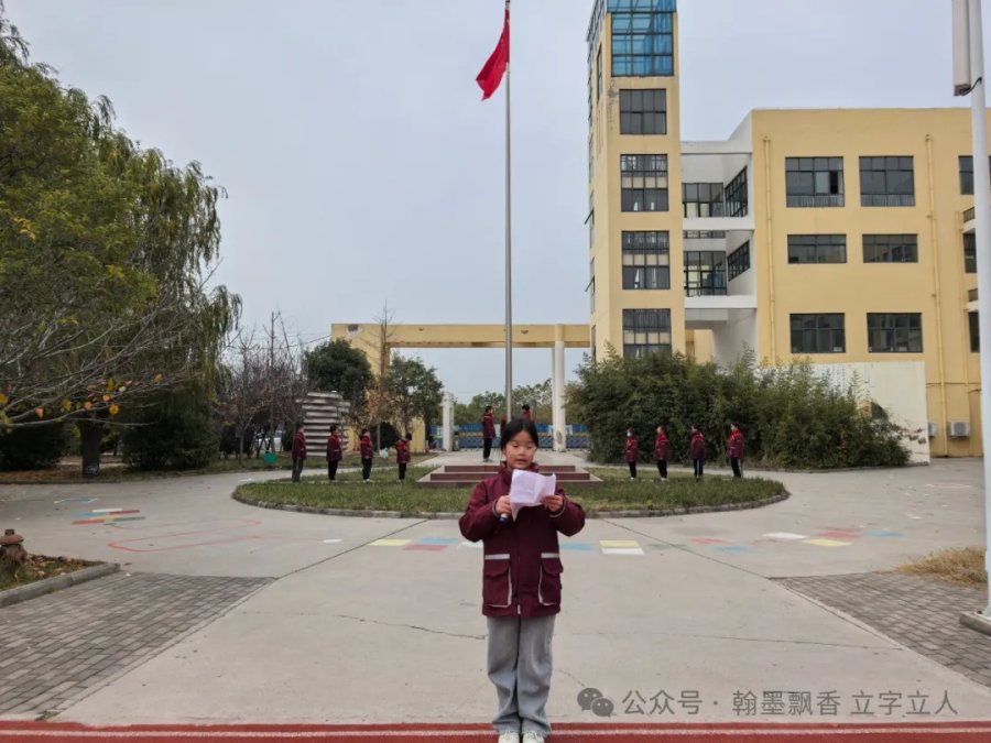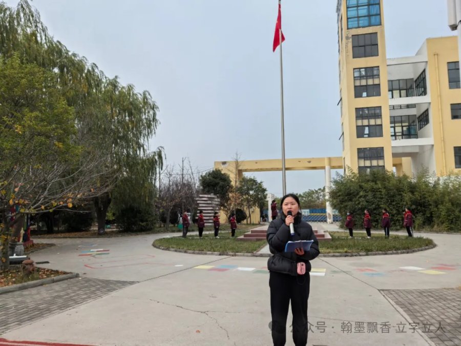 伴随着庄严的国歌,神圣的五星红旗冉冉升起,全体师生肃立,向国旗敬礼。仪式上,四一中队优秀少先队员代表作国旗下演讲,她呼吁大家感恩父母的养育、老师的教诲和朋友的陪伴。接着,四一中队辅导员带领同学们宣誓呼号。随后,大队部对获得卫生流动红旗和纪律流动红旗的班级进行了表彰。在集体节目展示环节,四一中队队员带来歌曲表演,展现了班级良好的精神风貌。最后,德育主任杜冰鑫进行讲话,他对上周各班的卫生、礼仪等方面进行了反馈并强调了本周的德育工作重点。