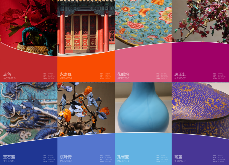 北师大未来设计学院师生设计的《故宫色彩系统指导手册》(手册内页节选)