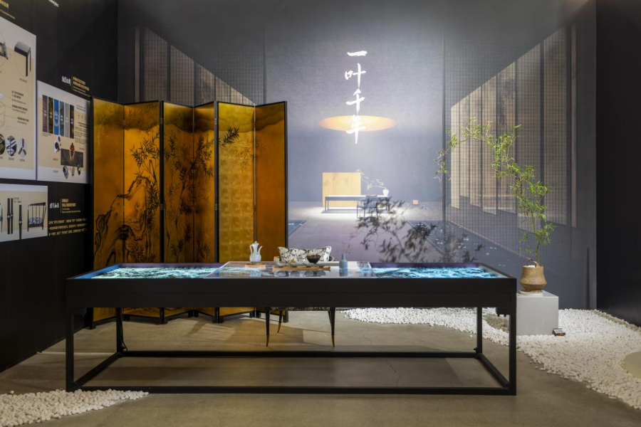 北师大未来设计学院2024年度教学成果展展示的迪拜世博会中华文化馆茶空间设计项目“一叶千年”