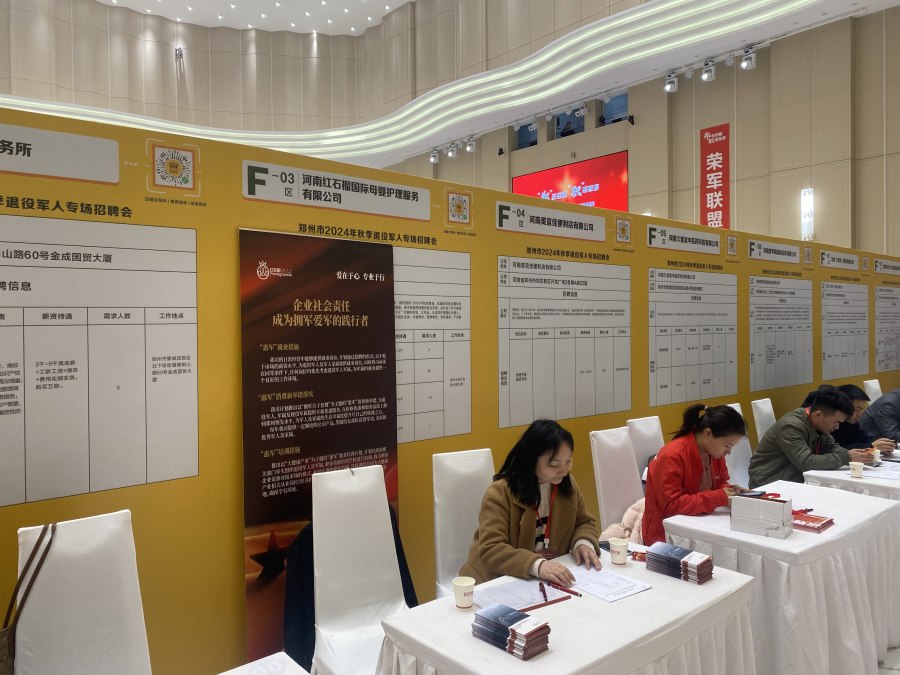 (记者张玉韩)11月22日,由郑州市退役事务局主办、郑州市退役军人服务中心承办、郑州各开发区、区县(市)退役军人服务中心协办的2024年郑州市退役军人专项招聘活动,在郑州市二七区华侨城艺术中心举办。