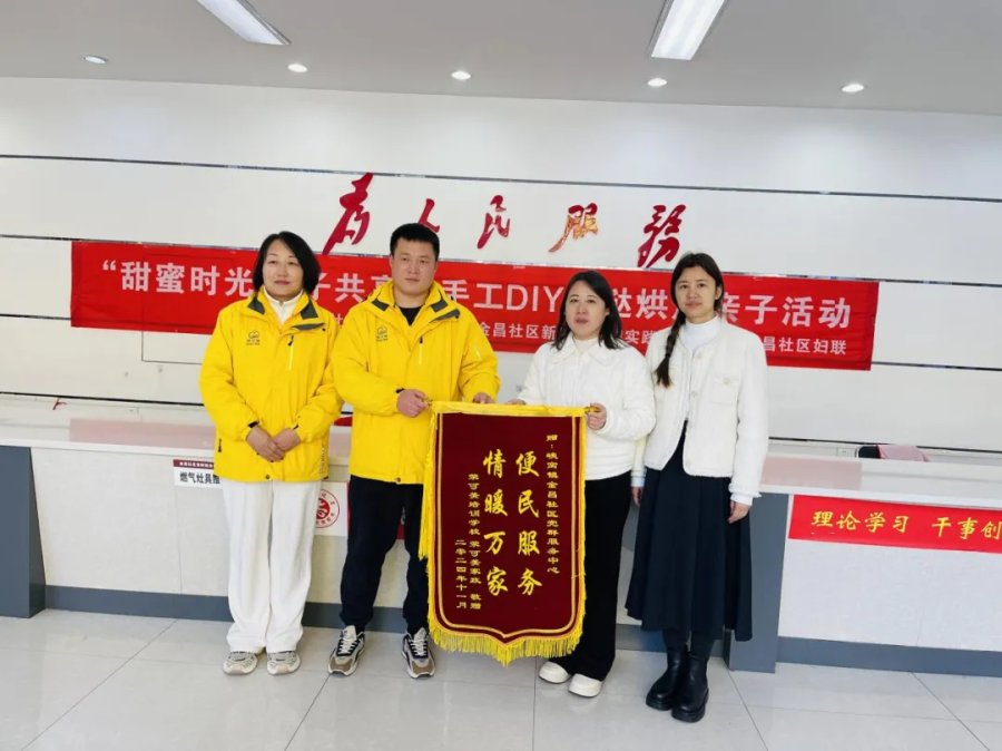 “张姐,你在社区吗?感谢咱社区为民办好事,帮助我们在家门口找到了工作,想给咱社区送一面锦旗……”11月26日,荥可美家政公司代表满怀感激地来到金昌社区,送上一面绣有“情暖万家 便民服务”的锦旗。