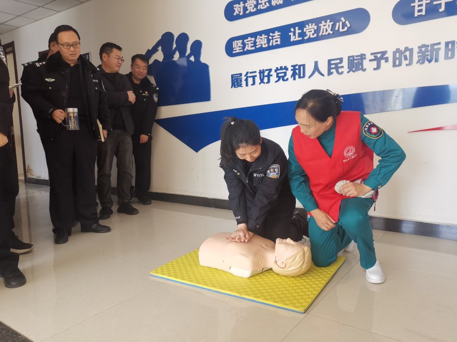 应急技能培训部分是本次讲座的重点内容。专业急救人员通过模拟真实场景,向干警们传授了心肺复苏术(CPR)、海姆立克急救法等关键急救技能。他们一边示范标准操作流程,一边强调每个步骤的要点与注意事项,如心肺复苏时按压的位置、频率、深度,以及海姆立克急救法在不同年龄段人群中的应用技巧等。干警们积极参与实操练习,在专业人员的指导下,逐渐掌握了这些救命技能的正确操作方法,确保在遇到紧急情况时能够迅速、有效地实施救援。
